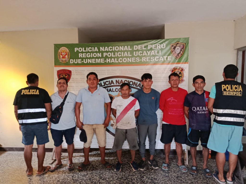 Los seis detenidos fueron trasladados primero a la Unidad de Emergencias de la Policía y luego a la sede de la Dirandro en Pucallpa para continuar con las diligencias.